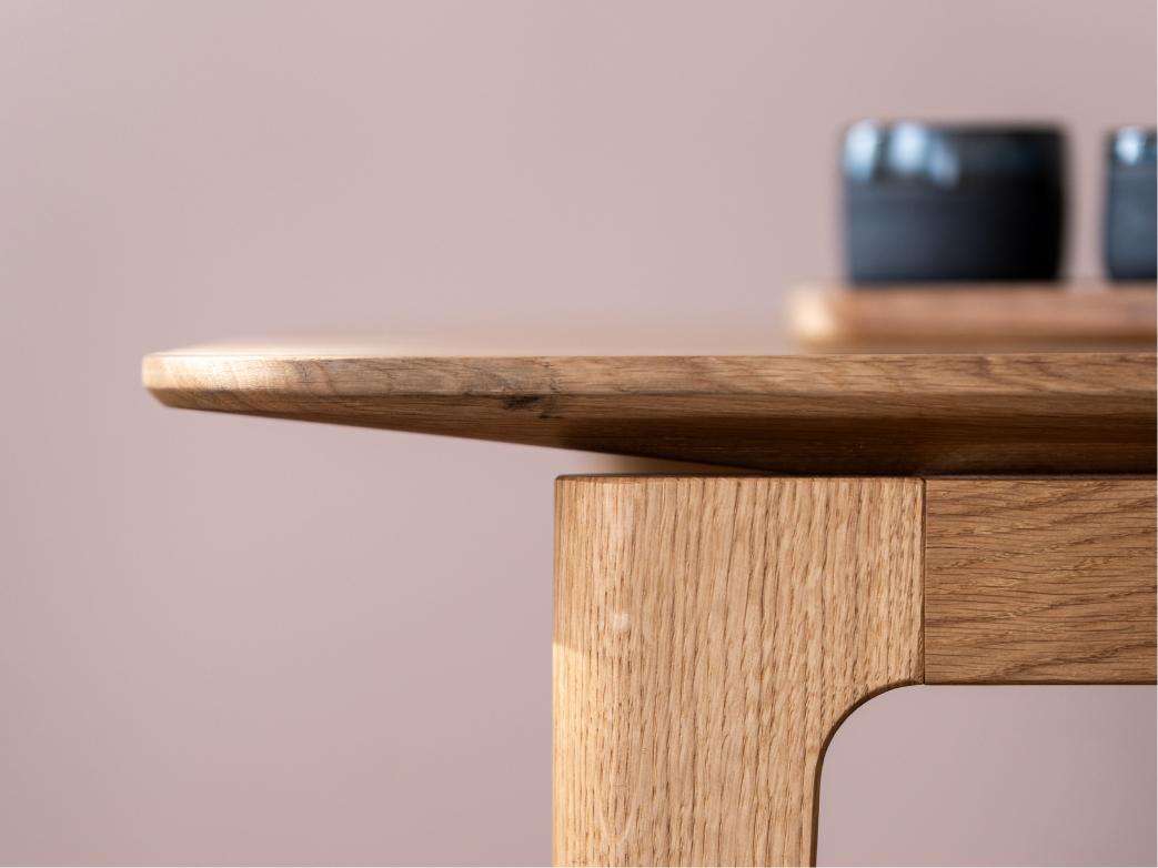 Wszystkie stoły, jak wspomniałem, powstają w Chełmie, w zakładzie, który łączy tradycyjne techniki stolarskie z nowoczesnymi rozwiązaniami technologicznymi. Pracujemy wyłącznie z litym drewnem, a każdy detal — od sposobu olejowania po wyprofilowanie krawędzi — jest efektem pracy rzemieślników, którzy od lat znają materiał i mają do niego szacunek. Dla nas lokalny kontekst to także odpowiedzialność, krótszy łańcuch dostaw, mniejszy ślad środowiskowy i wspieranie polskiego rzemiosła.